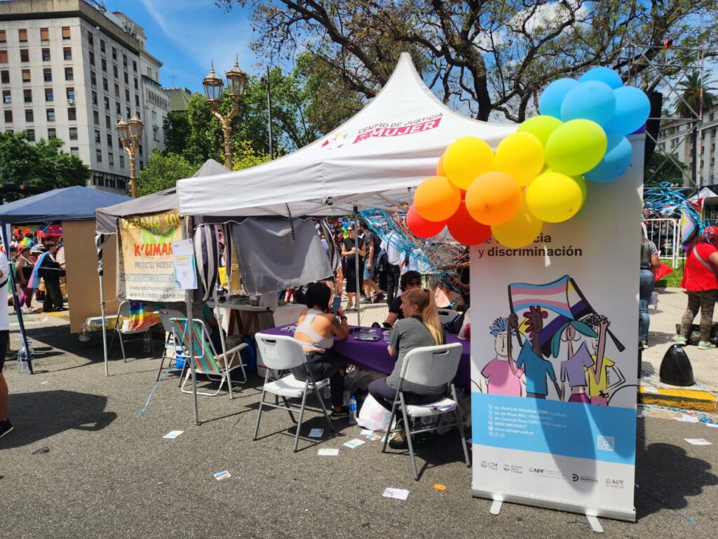 El Centro de Justicia de la Mujer participó de la 34ª Marcha del Orgullo en Argentina bajo el lema “Frente al odio y la violencia más orgullo y unidad” con la colocación de un gazebo para difundir las acciones del Programa de Acceso a Derechos para Personas Travestis, Transexuales y/o Transgénero (TTT) en la intersección de Bolívar y Rivadavia.