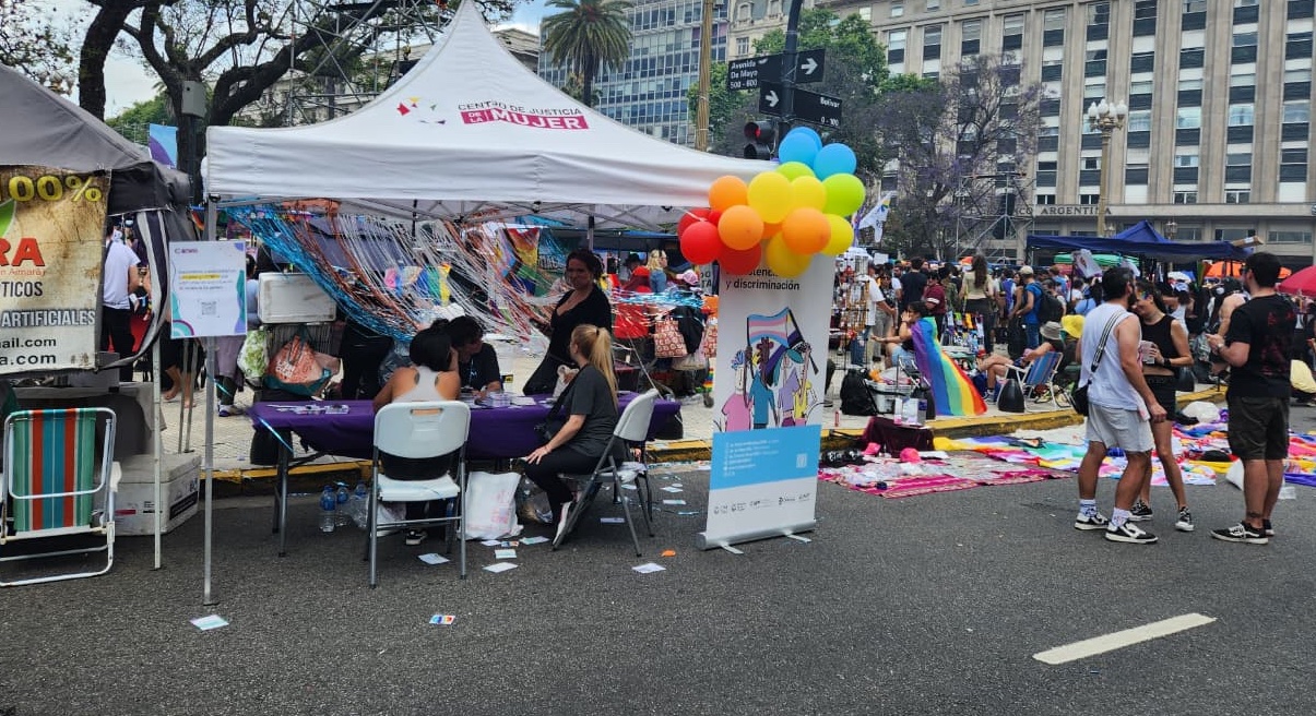 El Centro de Justicia de la Mujer participó de la 34ª Marcha del Orgullo en Argentina bajo el lema “Frente al odio y la violencia más orgullo y unidad” con la colocación de un gazebo para difundir las acciones del Programa de Acceso a Derechos para Personas Travestis, Transexuales y/o Transgénero (TTT) en la intersección de Bolívar y Rivadavia.