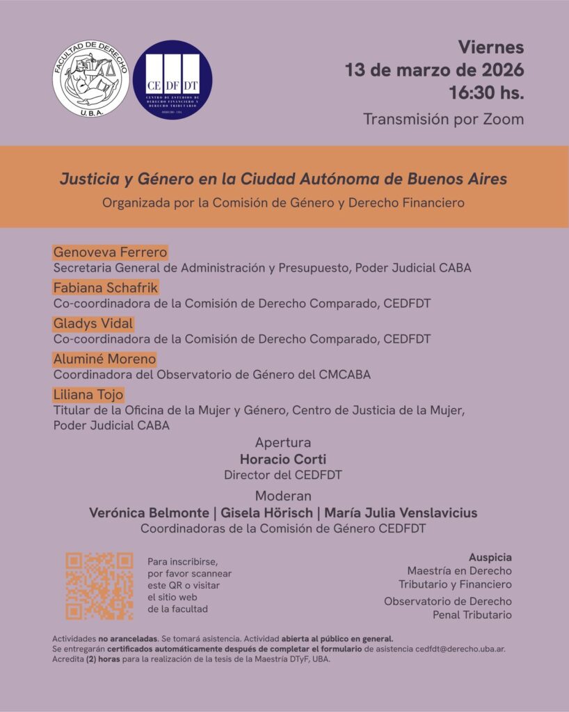 Se realizó el encuentro "Justicia y género en la Ciudad Autónoma de Buenos Aires", organizada por la Comisión de Género y Derecho Financiero de la Facultad de Derecho de la UBA.